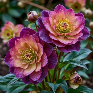 - Уникальная окраска: главная особенность этого сорта — его яркая и необычная окраска, словно отражающая пламя костра. Цветки морозника Претти Элен Рэд имеют насыщенный оранжевый цвет, который у краев лепестков переходит в легкий фиолетовый оттенок, создавая эффект мерцания и глубины. Такая палитра делает каждый цветок неповторимым и притягивающим взгляды.